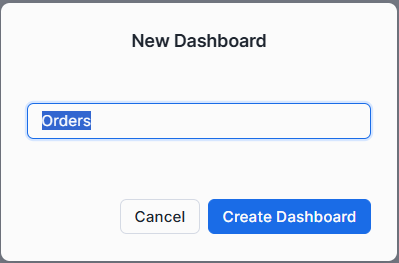 Give it a name like “Orders” and click “Create Dashboard”: