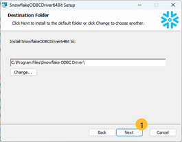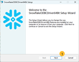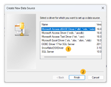 Select the “SnowflakeDSIIDriver” (1) and click “Finish” (2):