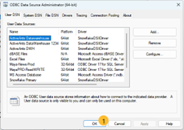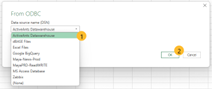 Select the ODBC Data source you just installed (1) and hit “OK” (2):