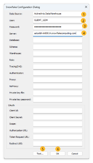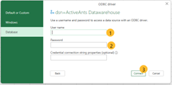 - Data Source (1): “ActiveAnts DataWarehouse”. You can choose how to name this source